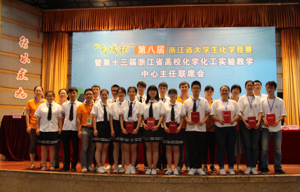 学子在2016年 “飞域杯”浙江省第八届大学生化学竞赛中再创佳绩,分别获一等奖2项、二等奖2项和三等奖3项,竞赛成绩在全省高校位居前列。