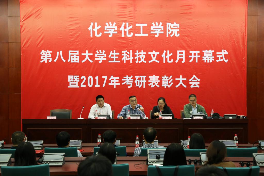 共有36名同学考取国内高校硕士研究生,录取人数比去年增加10人,考研升学率居全校第一。大学生科技文化月活动的开展既展现了学生的各级各类科研、考研成果,又成功地营造了良好的科研、学习文化氛围,培养了学生创新精神和实践能力,从而带动学院教风学风的整体提升。本届大学生科技文化月活动主题为“科技、人文、服务、创新”,将围绕主题开展学生科研成果展及学生科研讲坛,2017届考研表彰暨2018届考研动员系列活动,青年之声——优秀学子经验分享会,剿灭劣V类水社会实践活动,“化学在身边”系列主题团学活动等。