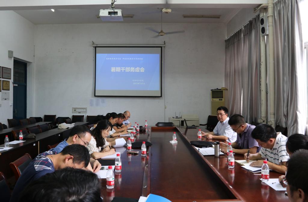 7月5日,学院2017年暑期干部务虚会在志廉楼136会议室举行,会议以“更新教育教学观念,开创学院教学工作新局面”为主题,紧紧围绕刚刚结束的学校教学工作会议内容和精神,对新形势下,学院如何转型发展,提高人才培养质量等方面作了认真梳理和思考。学院班子成员、党委委员、纪委委员、科级干部、学术委员会委员、教学委员会委员、实验室主任、教学督导、工会主席等参加了会议。会议由学院党委魏佩敏书记主持。