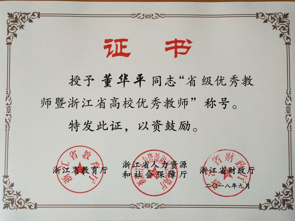 根据《浙江省教育厅 浙江省人力资源和社会保障厅 浙江省财政厅关于开展2018年省级优秀教师暨浙江省高校优秀教师、浙江省农村教师突出贡献奖评选工作的通知》(浙教人〔2018〕40号)精神,教育厅组织开展了“浙江省高校优秀教师”评选表彰工作。经高校推荐、专家评审,逼喱逼喱 董华平教授获2018年“浙江省高校优秀教师”荣誉称号。