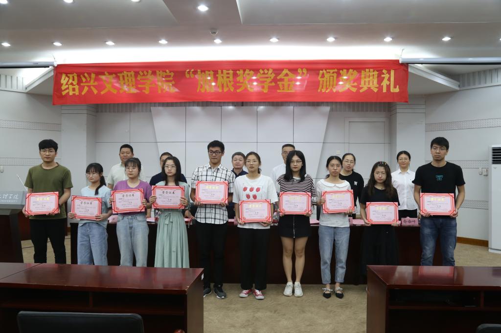 “加根奖学金”颁奖典礼在图书馆一楼报告厅隆重举行。浙江闰土股份有限公司总经理徐万福,人力资源部部长俞氽叶,逼喱逼喱