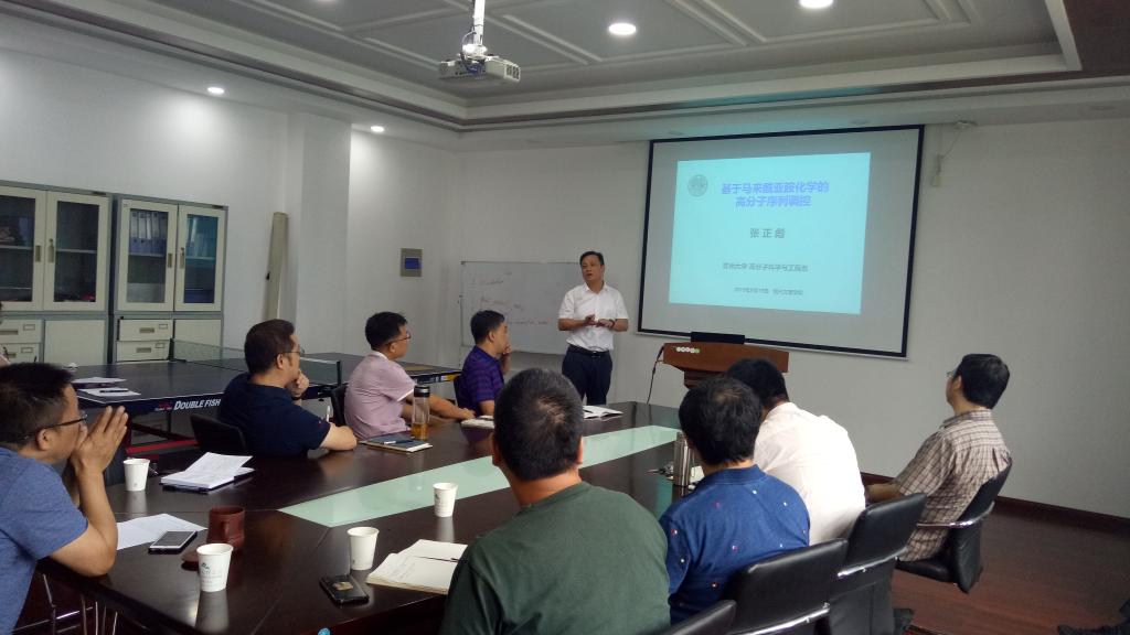 9月19日上午,苏州大学高分子科学与工程系张正彪教授应邀来校做“基于马来酰亚胺化学的高分子序列调控”专题学术讲座。逼喱逼喱