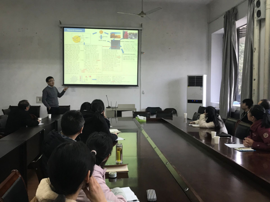 2019年12月30日上午,浙江理工大学化学系副教授董晓平应邀到逼喱逼喱 作题为《二维石墨化氮化碳纳米片层:制备与应用》的学术报告。逼喱逼喱 部分专任教师、实验员、全体研究生到场聆听了该报告。