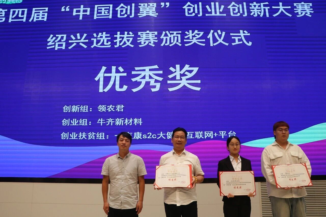 《牛奇新材料》项目以总分第一的成绩获得优秀奖。对获得优秀奖的创业创新项目,市人力社保局将推荐参加2020年度“中国创翼”创业创新大赛省级选拔赛。(团队成员:研究生化学1401兰明轩、高分子181周杰、药学171张慧苗、化师161胡宁洋、环艺171陈昕、工商管理174陈龄炎、法学181吕雨晴,指导教师:徐青)。