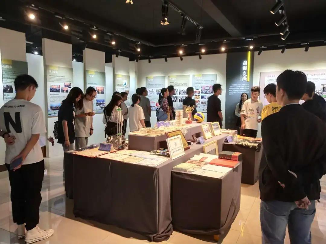 接下来同学们观看了学校宣传片,讲解员向同学们讲述了学校发展前沿、办学历程、历任领导、领导关怀、校友工作、社会支持、教育教学、学科建设、科学研究、师资队伍、服务社会、国际交流、校园文化、以及卓越奖学金获奖者等各个板块。在校史馆中,同学们还参观了书法体验平台,观看了我校专业布局与地方产业对应表。最后同学们观看了我校改扩建宣传片,对学校未来的发展有了更加清晰的认识。