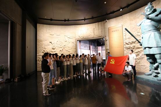 首先,党员们参观了大禹纪念馆。纪念馆展厅入口处镌刻着的大禹精神,令党员同志们纷纷驻足。在大禹精神刻文旁,党员干部们自觉竖起党旗,在学院党委书记魏佩敏同志领誓下,重温入党誓词,铮铮誓词,久久回荡在博物馆内。