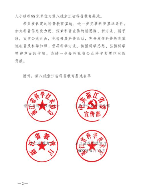 日前,浙江省科学技术协会官网公示《关于认定第八批浙江省科普教育基地的通知》,经评审,共有98家单位认定为浙江省科普教育基地。其中,越城区科协申报的逼喱逼喱