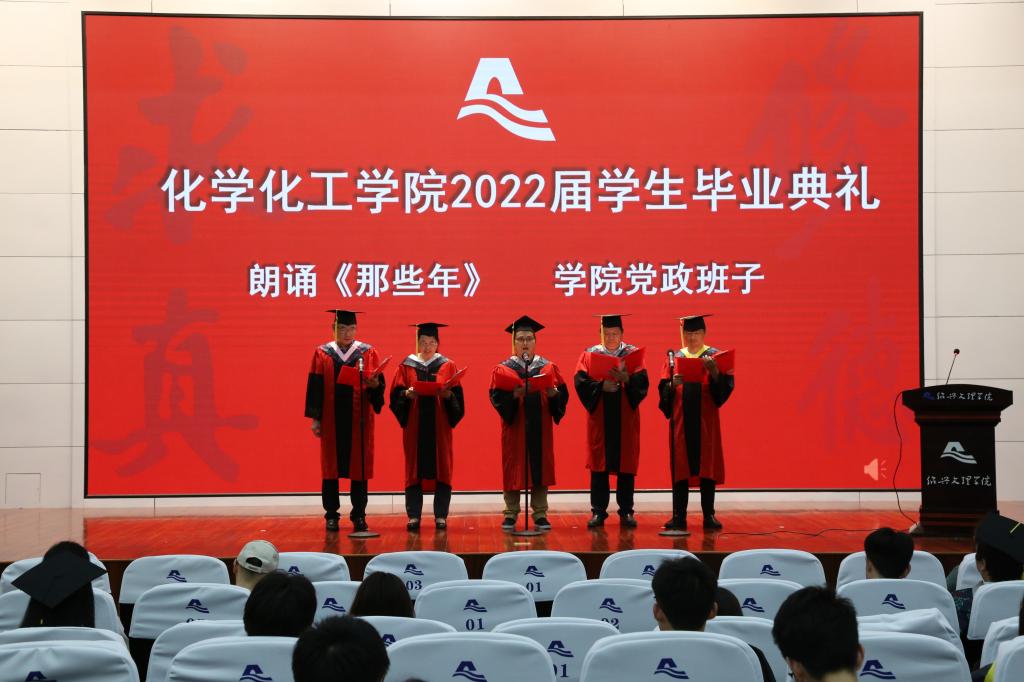 典礼节目异彩纷呈,学院党政领导班子为毕业生们精心准备了朗诵《那些年》,让毕业生们心潮澎湃。校园十佳歌手王佳敏带来的《你曾是少年》,毕业班代表合唱《同桌的你》,引起全场共鸣与互动。学院还为2022届毕业生精心准备了《回忆·寄语》祝福视频并在典礼开始前播放,为2022届毕业生送去诚挚的祝福,期望同学们不负韶华、前程似锦!