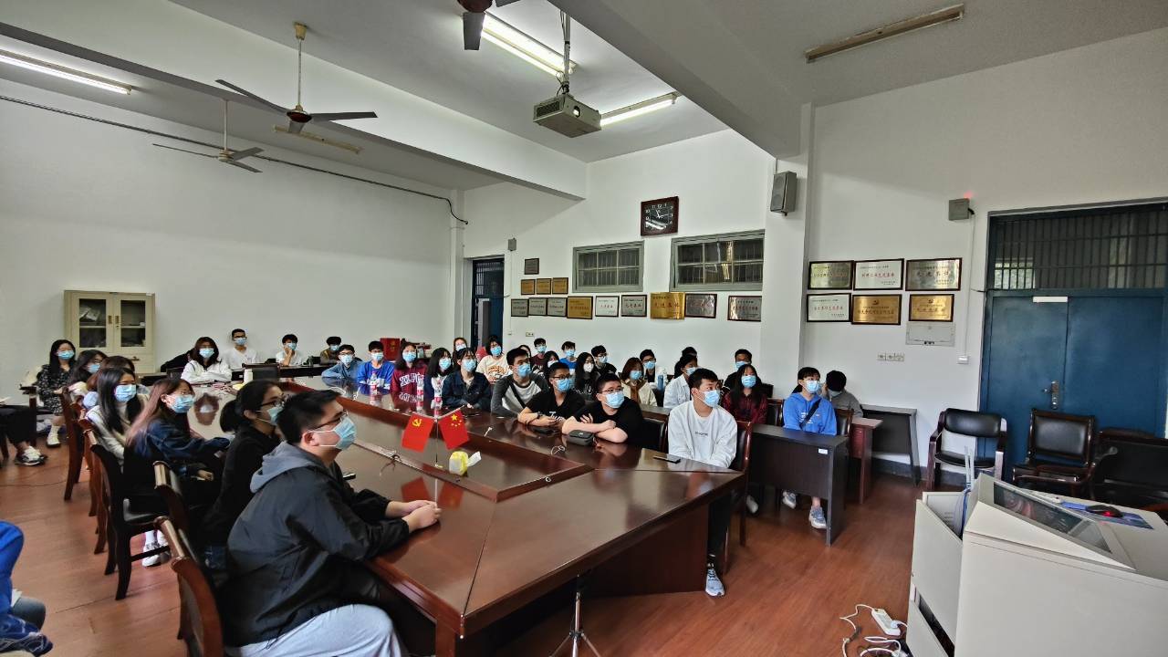 学院分团委学生干部和团支书代表在铁城科教馆报告厅收看开幕会