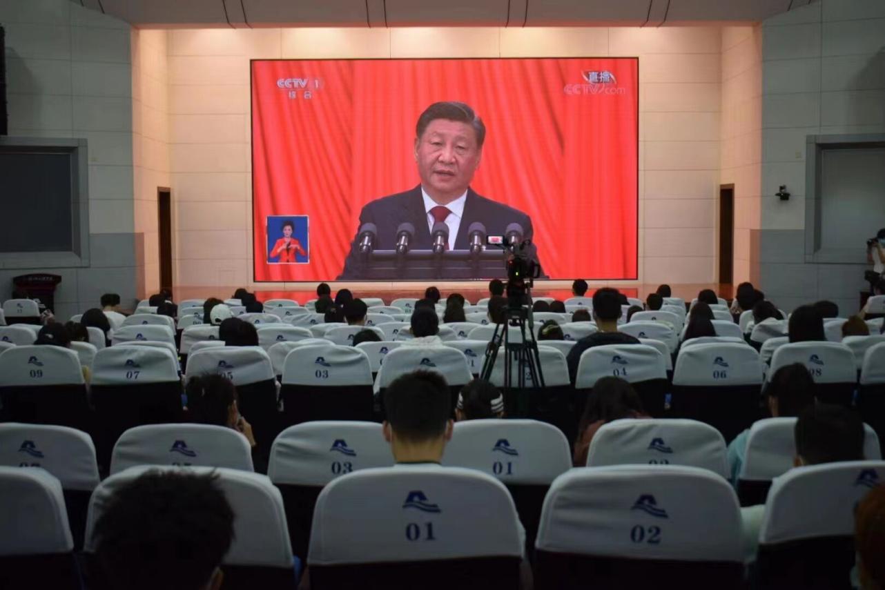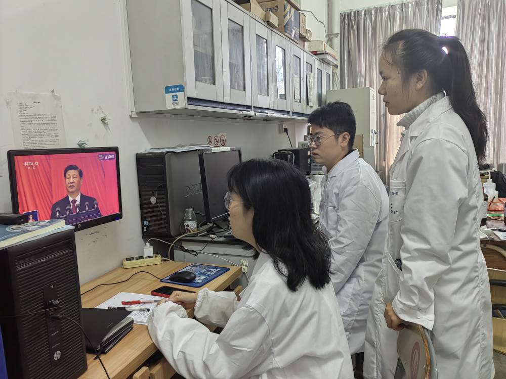 师生热切关注大会盛况,学院党委分别在理工楼134教室、志廉楼136会议室组织师生集中收看。学院党政领导徐青、曾敏峰、陶菲菲、董华平、王颖,师生党员代表,少数民族学生代表,党团校学员代表、学生代表等集中收看大会开幕会实况,其他师生也采取多种形式收听收看大会开幕会。