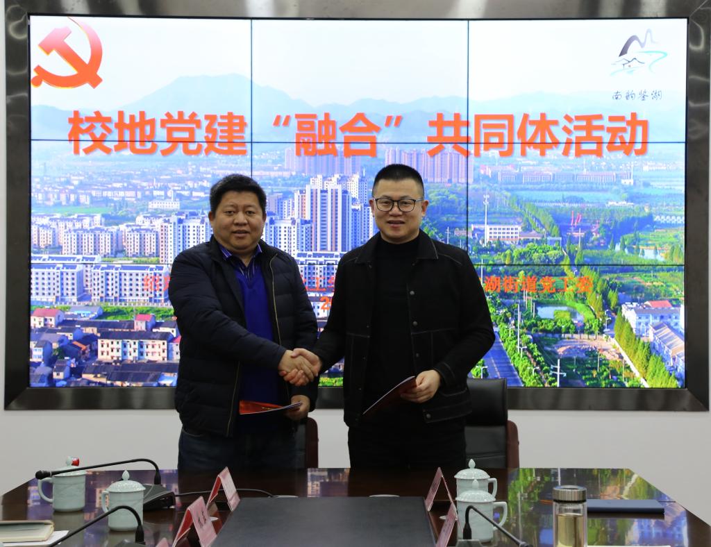 党委与鉴湖街道党工委双方签署了校地党建融合“三全”强基工程协议书,并就推进此项工程开展座谈,初步计划拟结合资源库、需求仓和任务包内容在党建、教育、科技、人才、双创、科普等领域推进深入合作融合,着力推动校地党建“全区域建强、全领域过硬、全方位融合”。