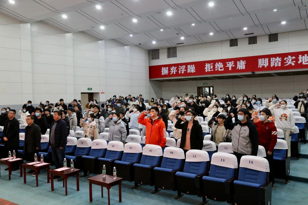 执行院长曾敏峰做考研(博)冲刺动员,他表示深入学习贯彻党的二十大精神,全面建成社会主义现代化强国,实现第二个百年奋斗目标,需要培养更多高素质人才,读研(博)就是进一步提升自我的途径,也是同学们在实现中华民族伟大复兴中有所作为的重要基础准备。他用“坚定信念,应考尽考;查漏补缺,劳逸结合;敢打敢拼,来日方长”二十四个字鼓励学生以积极、平和的心态面对考研,在务实与坚持中砥砺前行,展现文理学子“修德求真,追求卓越”的精神。