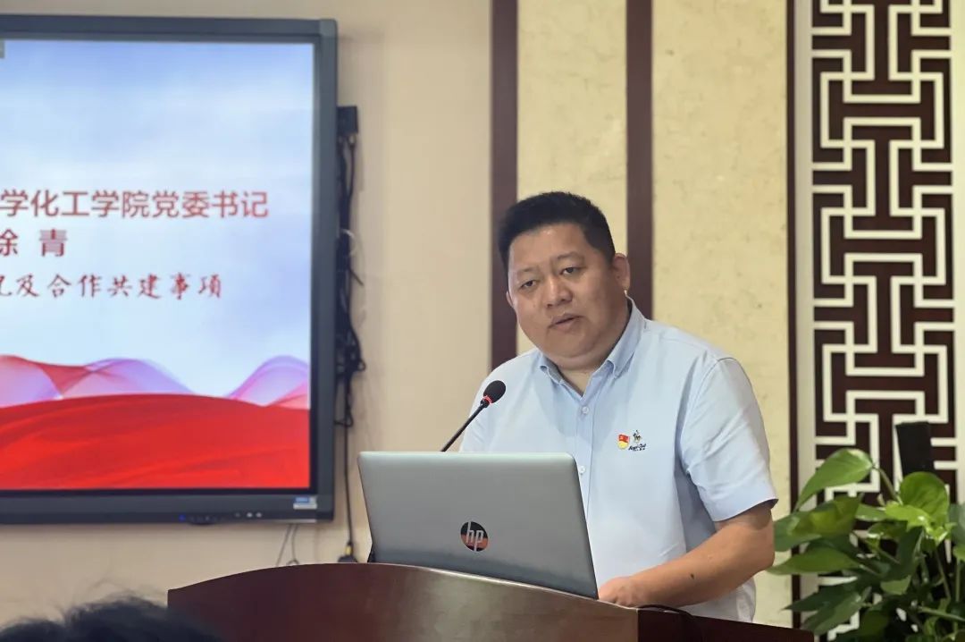 党委书记徐青简要介绍学院情况及合作共建事项,他强调两校在历经五年的良好合作基础上,应立足绍兴区域发展的需求,进一步加强合作共建,本着“立德树人,培育一流人才”的理念,提升中本一体化教学质量,服务区域优势产业,做细做实党建引领和党建育人新任务,助力绍兴医药化工产业应用型人才培养。
