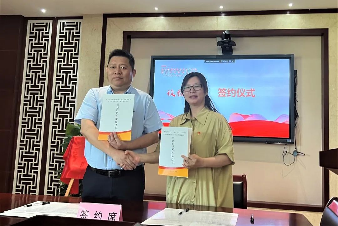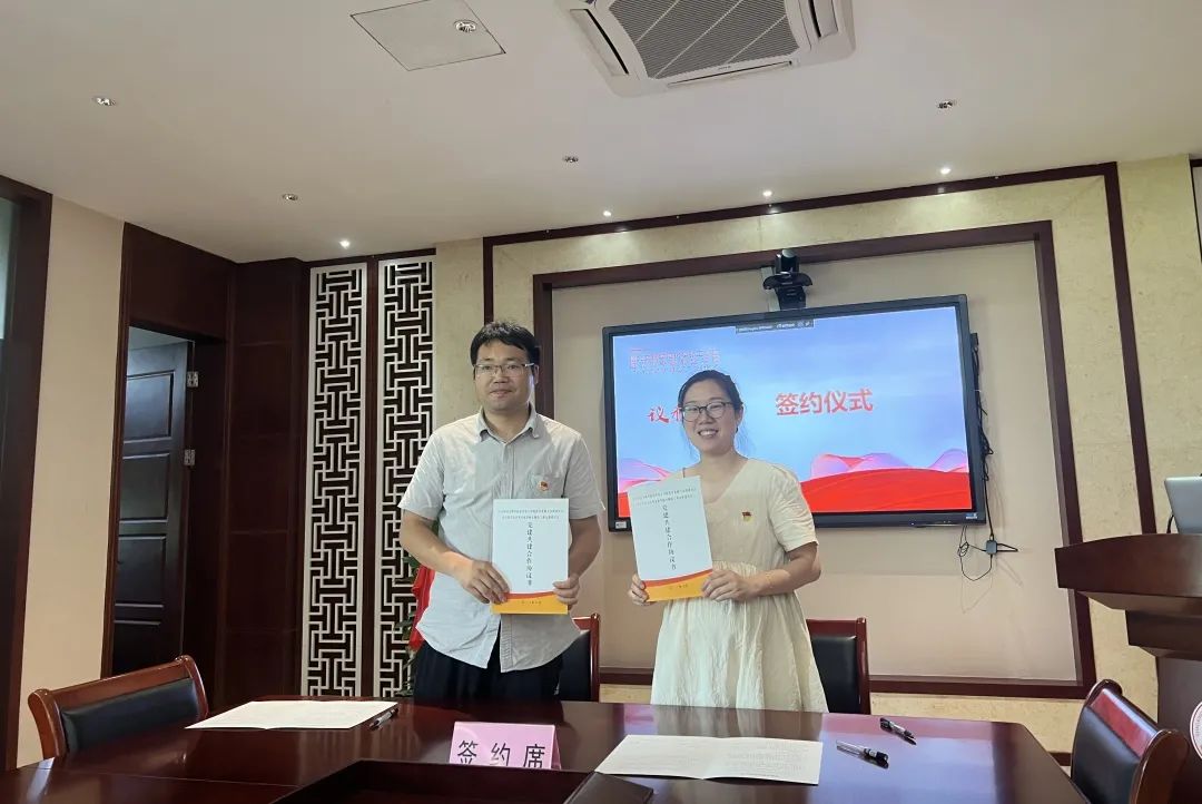 党委书记徐青和执行院长曾敏峰与对方学校分别就党建共建和合作共建签约,药学系教工党支部书记杜奎与绍兴市中等专业学校生物化工系党支部就支部共建签约。市教育局党委委员、副总督学朱伟明与鉴湖街道党工委书记赵溢彬共同为两校博士工作站揭牌。