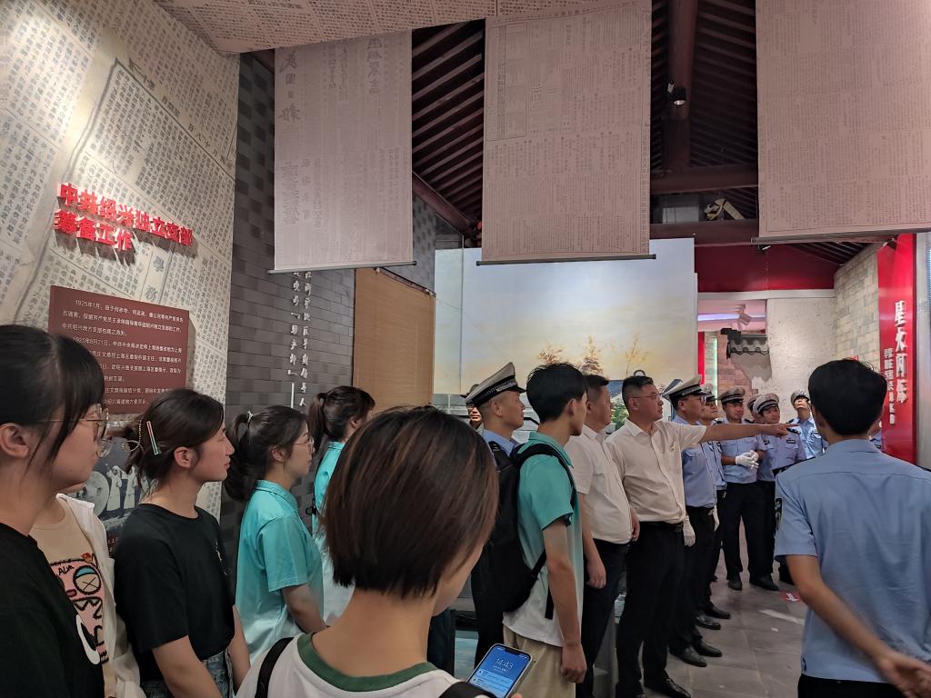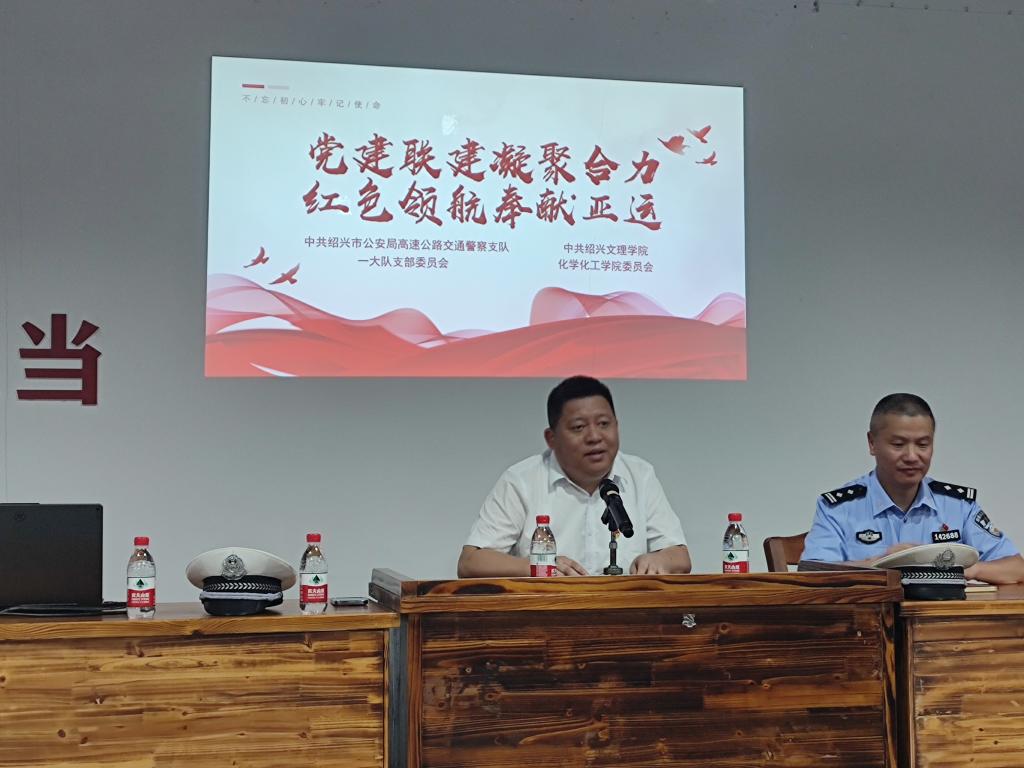 与绍兴市公安局高速公路交通警察支队一大队在中共绍兴独立支部纪念馆开展以“党建联建凝聚合力 红色领航奉献亚运”为主题的党建联学共建活动,高速交警一大队党支部书记、大队长骆国夫、一大队党支部委员、副大队长周华云、学院党委书记徐青、副书记王颖出席活动,高速交警一大队全体党员、学院各教工党支部委员、行政教工党员、研究生党支部党员、学院亚运会党员志愿者参加活动。高速交警一大队党支部书记、大队长骆国夫主持活动。