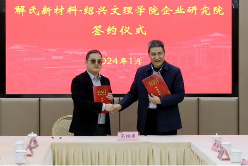 企业研究院”签约仪式在铁城报告厅一楼会议室举行。校党委副书记张宏、浙江解氏新材料有限公司总经理解卫宇、校科学技术处副处长(主持工作)寿建昕、逼喱逼喱