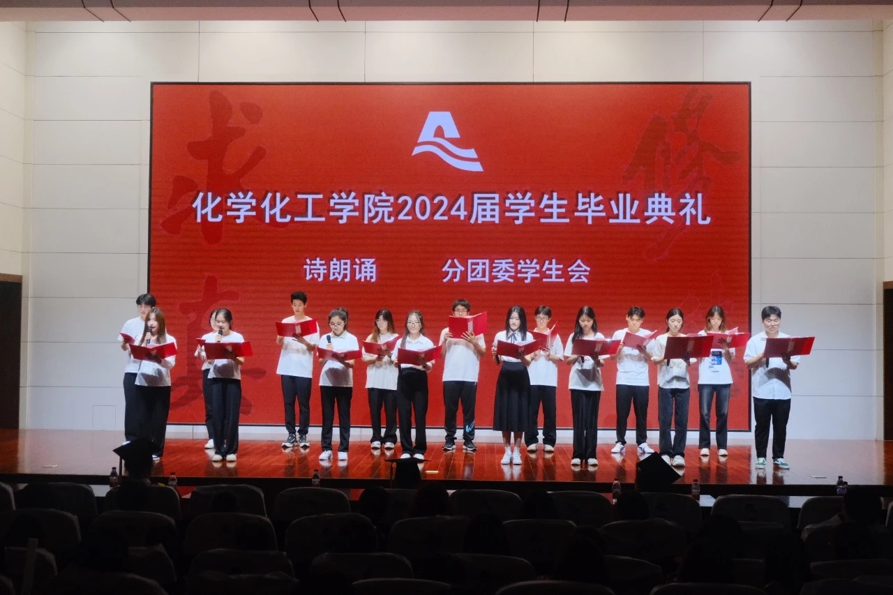 在典礼的最后,校园十佳歌手王佳敏给毕业生们带来了精彩的歌曲串烧;分团委学生会给毕业生们送上一首充满回忆的诗朗诵;毕业班高分子201班同学们为大家带来了一段幽默的《被子舞》,研究生会为毕业的同学们合唱歌曲《再见》,为这场毕业典礼画上了完美的句号。