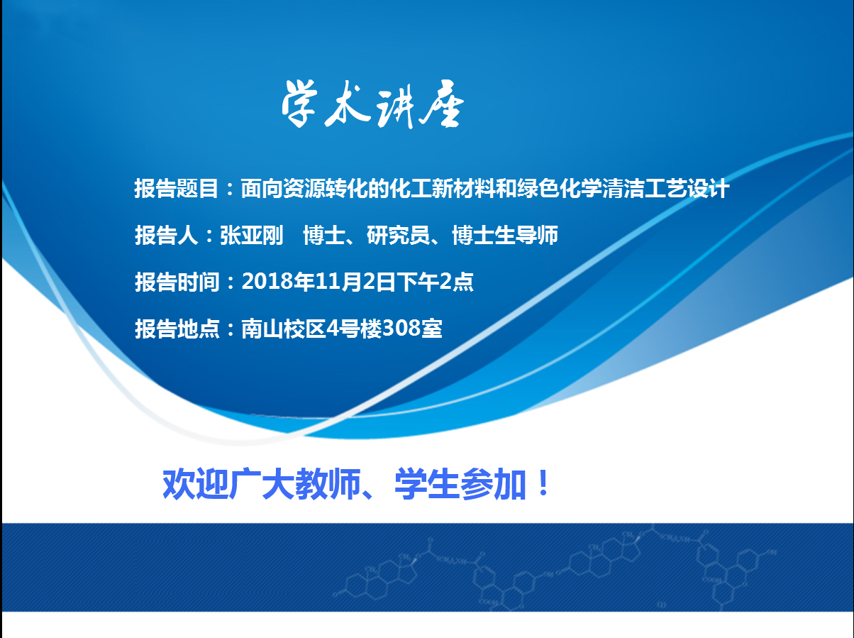 学术报告:面向资源转化的化工新材料和绿色化学清洁工艺设计