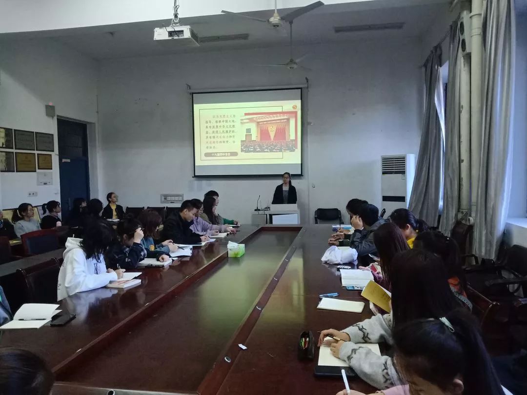 2019�11�15日,我院团校第五期学生干部培训班在志廉楼136会议室开展集中学习十九届四中全会精神主题团课。此次团课特别邀请我校习近平新时代中国特色社会主义思想学生研习会宣讲团前来授课�