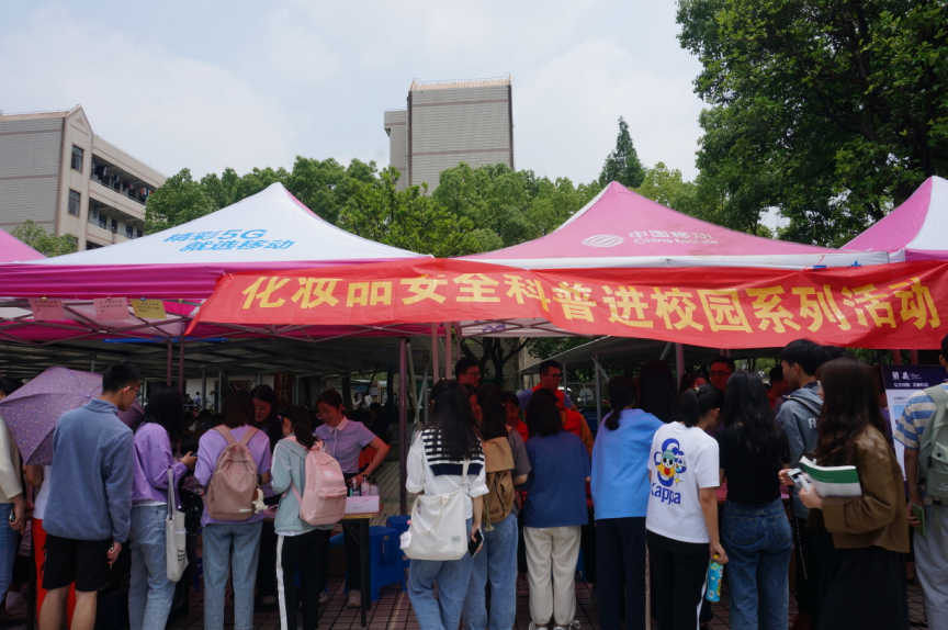活动现场,市场监管部门提供化妆品快速检测服务,邀请大学生参与化妆品知识问答,发放化妆品科普读本,并就安全用妆、科学用妆、化妆品不良反应等知识,现场为师生解答疑问,提升公众对化妆品安全的认知水平。科普志愿者们身着红色马甲,开展化妆品安全科普宣传、化妆品安全知识有奖问答等方面活动。绍兴第三医院提供皮肤病义诊服务,帮助大学生诊断各类皮肤问题并提出专业建议。湃肽生物、艾依诺、艾妍生物、颂珍珠和长生鸟等绍兴化妆品企业,也参与了此次活动,现场展示最新化妆品产品,赠送试用装,并且承诺会严格遵守化妆品监管相关法规,落实企业质量安全主体责任�