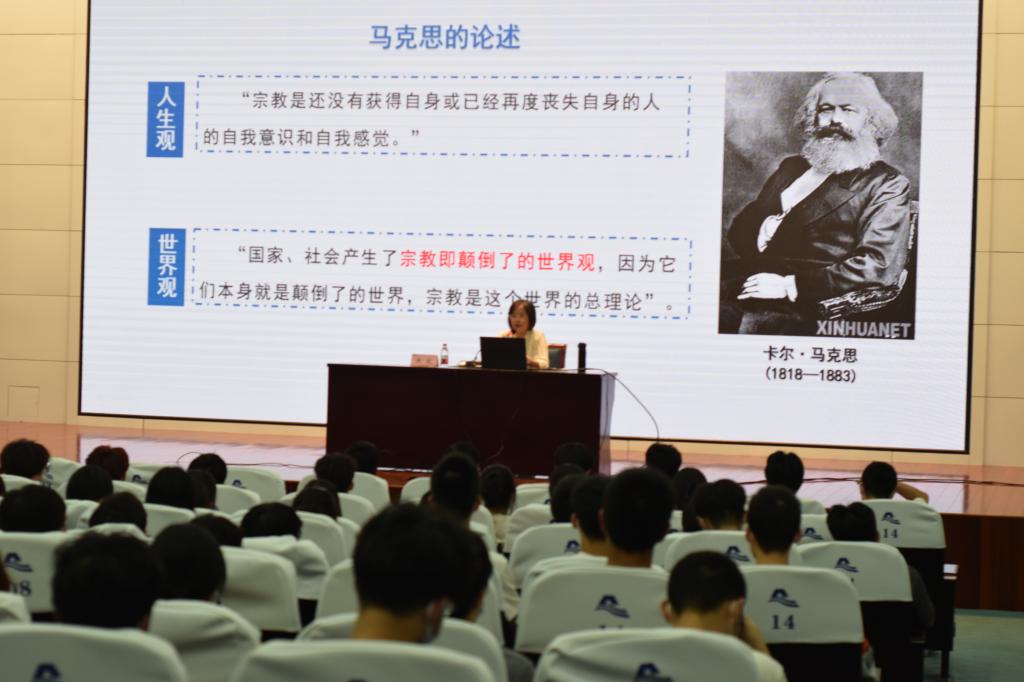 邀请马克思主义学院洪波教授在铁城科教馆报告厅开展针对22级新生的马克思主义宗教观及国家宗教政策法规教育讲座。
