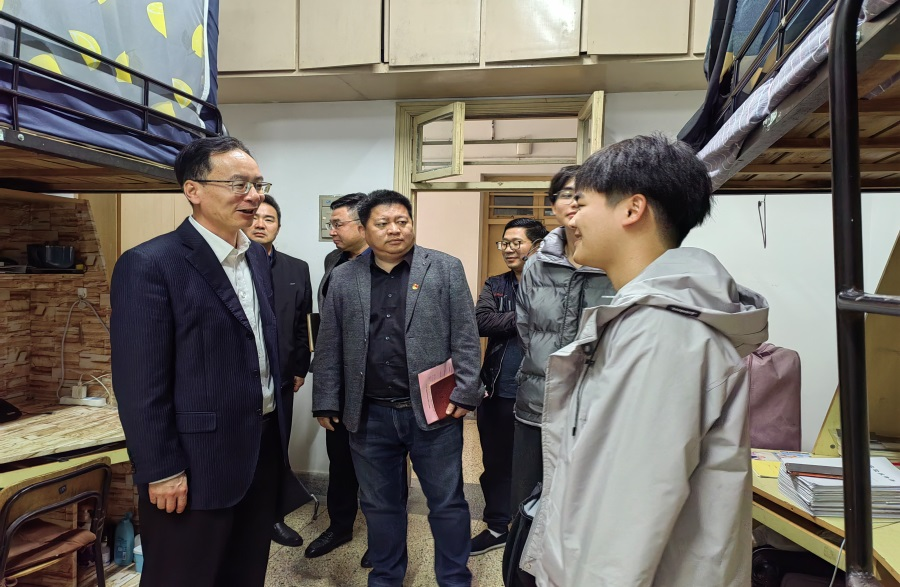 座谈会后,张宏走访了部分学生寝室,与同学们亲切交流,关心询问同学们学习生活情况。
