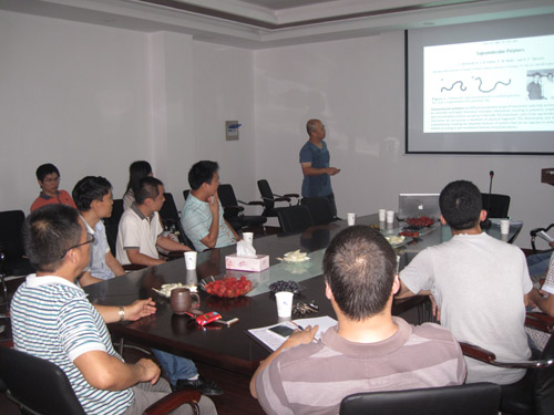 2015年6月24日,美国康涅狄格州立大学教授、逼喱逼喱 鉴湖学者讲座教授林遥来浙江省精细化学品传统工艺替代技术研究重点实验室做了题为《Recent advances in supramolecular polymer and materials》的专题报告,期间林遥教授从超分子结构-反应机理-应用方面等不同层面向大家展示了超分子的优势以及最新的研究进展。如何将高分子材料和超分子材料结合起来解决现有的工业问题引起了大家的热议。