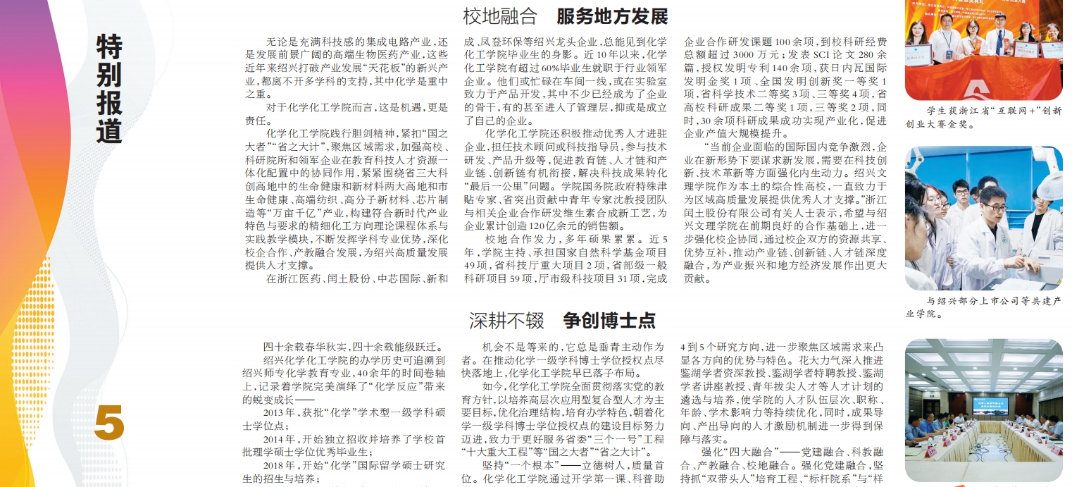 《绍兴日报》专版报道:越地“化学”创新人才的摇篮——逼喱逼喱